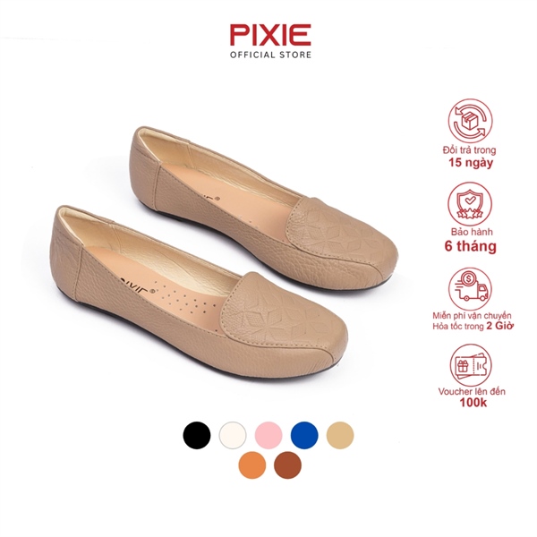 Giày Búp Bê Bệt Da Thật Mũi In Họa Tiết H177