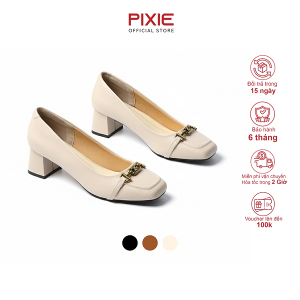 Giày Cao Gót 5cm Mũi Vuông Gắn Khoá Nhỏ Pixie Pump H436