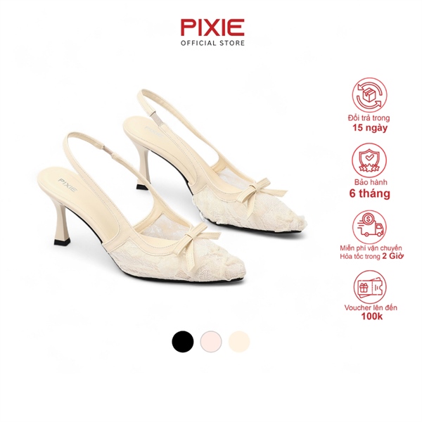 Giày Hở Gót 7cm Vải Ren Đính Nơ Pixie Slingback H410