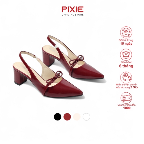 Giày Slingback 5cm Da Bóng Quai Nơ Nhỏ H374