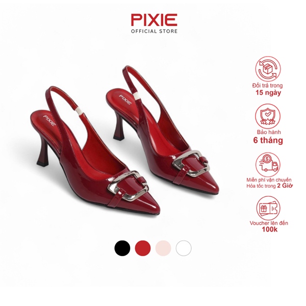 Giày Slingback Cao Gót 7cm Da Bóng Khoá Vuông H389